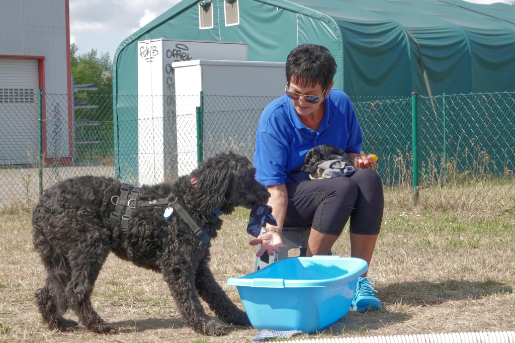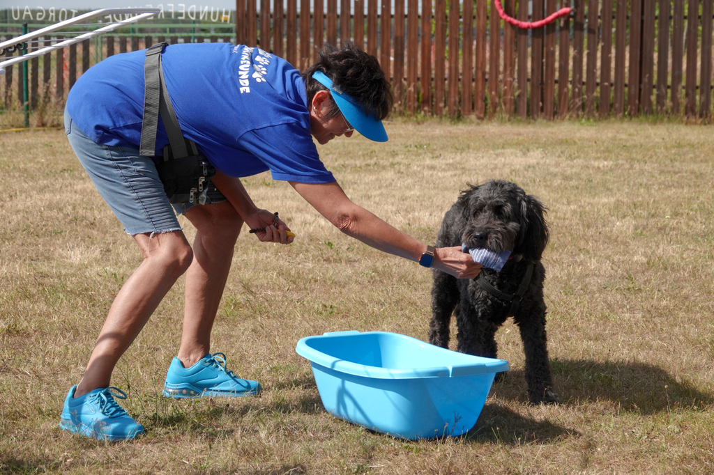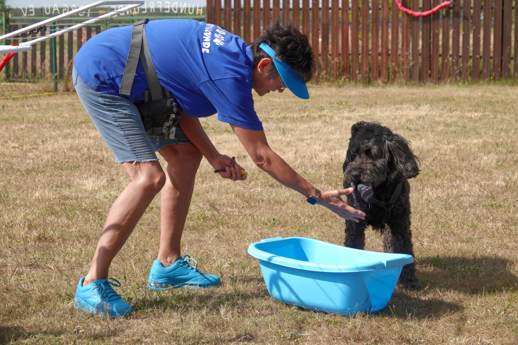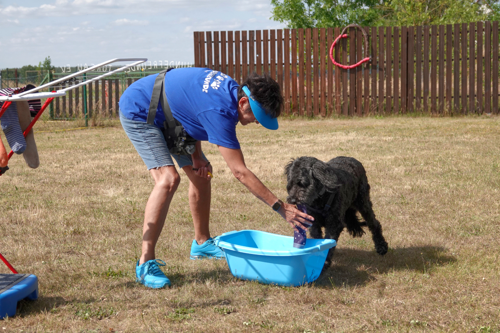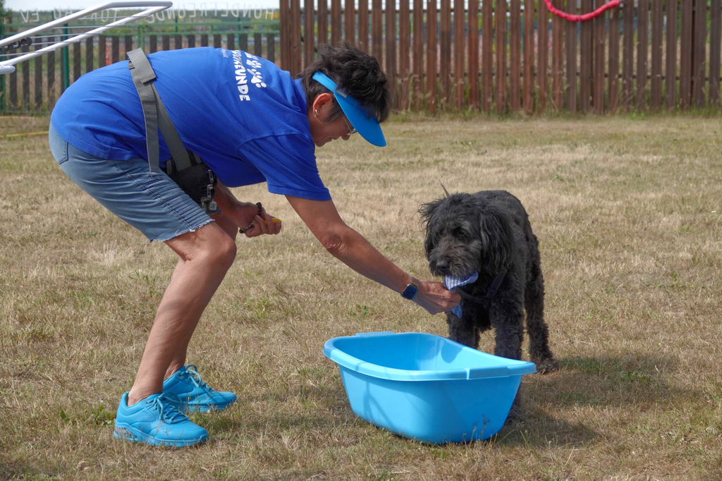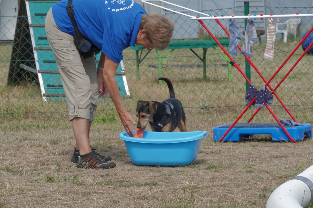 Training Juli 2025 – Hundetricks: Wir üben Wäsche abnehmen und aus der Schüssel zugeben. Auch der Maulkorb ist immer mal wieder im Einsatz, dabei Frust aushalten – haben alle gut gemeistert. Aufbau einzelner Agi-Geräte und Erziehung dürfen natürlich auch nicht fehlen ...